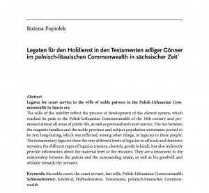 Szanowni Państwozachęcamy do lektury najnowszego artykułu Bożeny Popiołek zatytułowanego „Legaten für den Hofdienst in den Testamenten adliger Gönner im polnisch-litauischen Commonwealth in sächsischer Zeit”, który ukazał się w publikacji „Mittelalterliche und frühneuzeitliche Testamente im interdisziplinären Dialog”, red. Joanna Smereka, Göttingen : V&R unipress : Brill, 2025, s. 251-270.#NCN #koniecydwórszlachecki #women'scourt ... See MoreSee Less